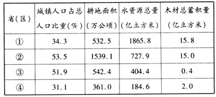 D、城镇人口占总人口比重①省(区)比③省(区)小,因此,乡村人口比重①省(区)比③省(区)大