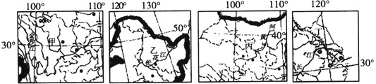 3、表中序号与图中甲、乙、丙、丁各省(区)排序一致的是