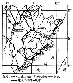材料二:向莆铁路是海峡西岸经济区拓展中西部腹地的一条重要铁路线,也是福建首条连接中部和内陆省份的现代化铁路。建成后将大大改善沿线地区陆路以公路为主的运输格局,有效完善区域综合交通运输体系。