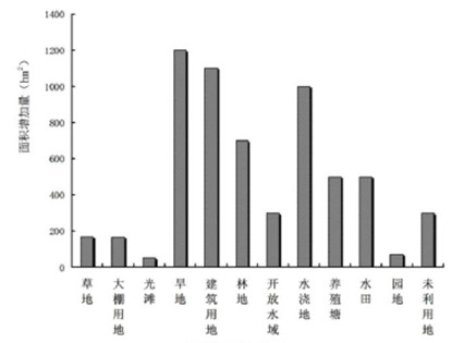 材料二:1987-2006年上海市F围垦区土地利用类型变化图(下图)。