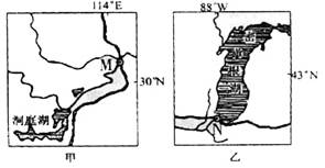 小题2:根据乙图的经纬度位置判断,该湖泊为死海,位于巴勒斯坦地区,是世界盐度最大的湖泊,主要受热带沙漠气候影响,A错误;世界最深的湖泊为贝加尔湖,B错误;由于盐度大,故不利于水产养殖业发展,C错误;死海是由于非洲板块与印度洋板块的张裂而形成,故D项正确。