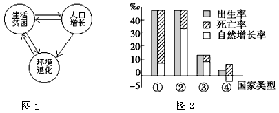小题1:随着社会发展和人口结构的变化,60岁及以上的人口比重逐渐增大,老龄化开始出现并日趋严重。结合图例可知60岁及以上的人口比重逐渐增大的排序是④①②③。