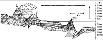 (3)当同学们到达B山山麓地带休息时,老师要求对照“我国东部某地海陆分布剖面示意图”,说出B处