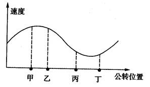 5、单选题 下图是地球公转位置与速度关系图,图中甲、乙、丙、丁四点中有两点处于二至日位置。下列叙述正确的是( )
