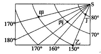 (2)甲、乙、丙、丁四地位于东半球的是______;位于高纬地区的是______。(4分)