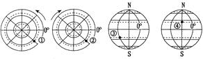 本题解析:根据地球自转方向及回归线、极圈、0°经线等信息可判断四地的地理坐标:①(23°26′N,45°W)、②(23°26′S,45°E)、③(23°26′S,90°W)、④(23°26′N,45°W)。