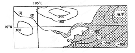 【小题1】河口附近等深线向海洋方向凸出,即等值线“凸低为高”,判断河口附近的水深较周边地区浅,故主要从河口地区泥沙淤积角度分析。