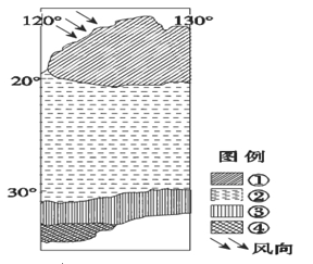 小题2:此季节,对①②③④地气候特点及其成因说法正确的是