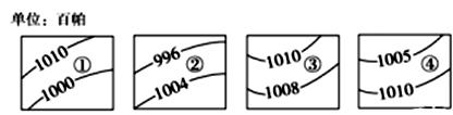 本题解析:四图比例尺相同,图上等压线疏密相同,则相邻等压线数值之差越大,则水平气压梯度力越大,风力越大。