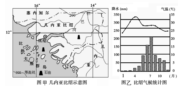 材料一:几内亚比绍示意图(图甲)和首都比绍气候统计图(图乙)。