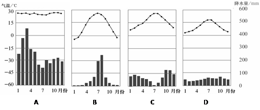 【小题1】若气候图是剖面图四地中某地的气候资料图,则在图的四地中,最符合所示气候特点的点及其对应的气候类型是( )