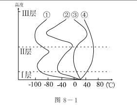 1. 图中正确表示大气层气温垂直变化的曲线是 ( )