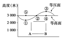 (4)图中风向:C处东侧为偏_____风,D处东侧为偏_____风。由此可知:A地_____风,B地_____风。