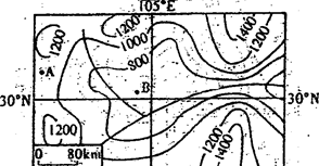 (3)图中A、B两点相对高度H的范围是________,河流支流的流向是________。