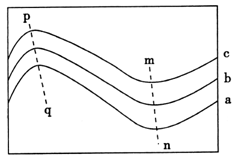 小题3:若图中曲线为等温线,a>b>C,且图示地区为大范围的、海陆兼备的地区,pq位于陆地,mn位于海洋,则此时