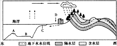 (4)在D处大量抽取地下水可能会造成:①_____________________、②__________________________、