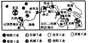 5、综合题 13.比较京津唐地区和长江三角洲地区城市和工业分布图,简要叙述和评价这两个地区工业部门的差异和发展工业的条件。