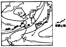 1.此气压分布图最有可能出现在2.此时,上海的风向是3.此时北京地区的气压与山东半岛气压相比