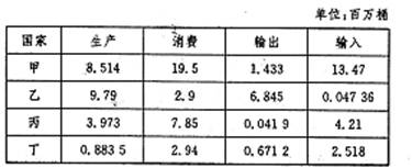 1.从上表判断,哪国国内每日石油现货呈现不足的情形2.根据上袭判断,甲、乙、丙、丁国家分别是