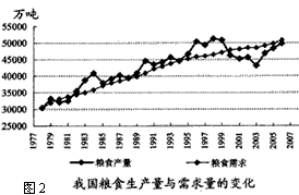 (2)改革开放以来我国粮食需求量总体上呈_________趋势,粮食产量呈_________趋势。