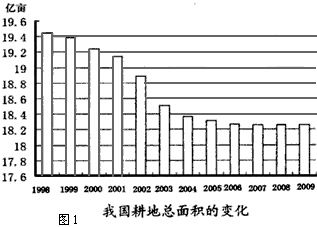 3、综合题 我国耕地的警戒线是18亿亩。读图1、图2回答下列各题。