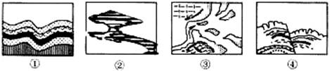【小题3】观察图,图①为内力作用形成的褶皱,图②为风力侵蚀形成的风蚀地貌,图③为河流堆积形成的河口三角洲,图④为断层,综上应选A项。
