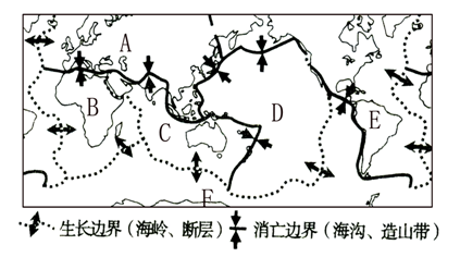 (3)喜马拉雅山脉是由 (填图中字母)板块和 板块相互挤压碰撞形成的。