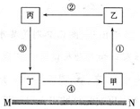 小题1:如果该图为地壳物质循环模式,MN为软流层,①为岩浆活动,③为变质作用,则