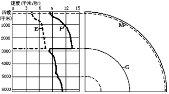 (2)E和F两种地震波大约在大陆地面下__________千米处速度明显加快,说明这里存在一个不连续面,