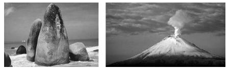 1.上左图是海南省著名的景观“南天一柱”照片,按地貌类型划分,该景观属于2.上右图是发生低强度喷发的墨西哥城东南的波波卡特佩特火山,组成该山体的岩石具有