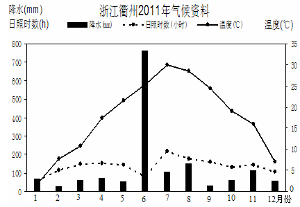 3、单选题 读浙江衢州2011年气候资料,回答问题。