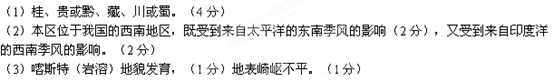 3、综合题 (28分)西南地区地大物博,资源丰富;但自然环境复杂,人类活动深受影响。阅读材料,结合所学知识,回答问题。