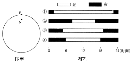 【小题1】图乙中,与北京此日的昼夜长短状况基本相符的是( ) A.① B.② C.③ D.④