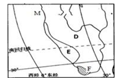 E为纳米布沙漠,它沿非洲西南大西洋海岸延伸2100千米,该沙漠最宽处达160千米,而最狭处只有10千米,其沿海岸线延伸的原因是:
