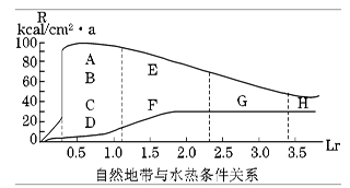 5、单选题 读“自然地带与水热条件关系”图,A~H表示不同的自然带,R为年辐射差额,即热量收入;Lr为干燥指数(多年平均蒸发量与降水量之比),指数越大,表示越干燥。据此回答8~9题。