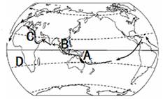 材料一? 2010年8月4日,在经历重重波折后,14岁的荷兰少女劳拉·德克尔终于可以一偿独自扬帆环球航行的夙愿。如图是劳拉此次航行的线路图。
