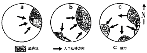 小题1:图中甲为该国核心经济区,经过a-b—c阶段的发展