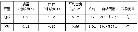2、单选题 ? 当前各国新一轮空间竞赛正向深空拓展,被称为“袖珍地球”的火星正成为新一轮空间竞争的焦点。由于各国在空间探测中一般遵循“谁先占有,谁先开发,谁先受益”的原则,多位专家预言,在未来几个世纪内,各个发达国家将在火星开发中掀起一场新的“圈地运动”。分析下表,回答1—2题。