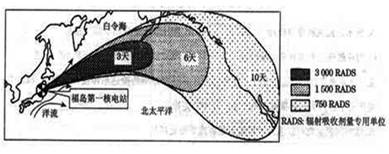 A.1月该河流处于丰水期 B.该河流域地势起伏不大,水能资源不丰富 C.该河流每年会出现凌讯 D.一般情况下,该河河道西岸较陡,河道较深 3、单选题 北美湿润的气流主要来自于 4、单选题 发生在日本本州岛东部海域(142.6°E,38.1°N)的9.0级大地震,导致了福岛第一核电发生核泄漏事故。图是福岛核电站泄露辐射范围示意图。据此完成题。 |