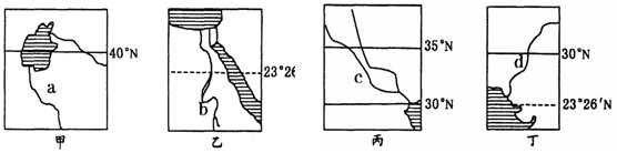 5、单选题 在年降水量少于250mm、灌溉水源不足的地区,一般不能发展灌溉农业,下图所示甲、乙、丙、丁四个地区都是灌溉农业区。读图回答1~4题。