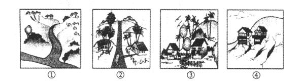 1、单选题 读图“山区道路与房屋建设示意图”,道路(图①与图②)房屋建设(图③与图④)符合规划施工原则的分别是