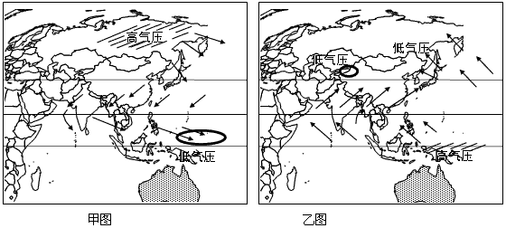 参考答案:(1)甲;蒙古—西伯利亚地区形成高气压(东亚盛行西北风、南亚盛行东北风)