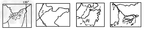 1.图中甲、乙、丙、丁四地区春分日日落的先后顺序是