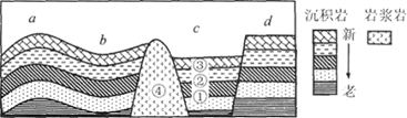 3、单选题 下图为某处地层未曾倒置的地质剖面图,其中①至④代表所在地层的成岩作用。