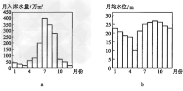 2、单选题 下图表示我国某水库年内逐月入库水量(a)、月均水位(水面海拔)(b)。读图完成1~3题。