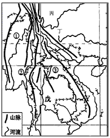 (3)丁为我国的什么高原?简要说明其地表崎岖的形成原因。