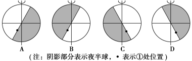小题1:下列四幅图中,与①处当日日出时刻相符的是( )