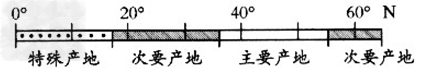 2、单选题 读“苹果种植的纬度分布示意图”(下图),苹果特殊产地形成的主要因素是