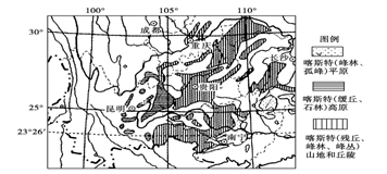 (2)我国西南地区是世界上喀斯特地貌十分发育的地区之一,请从喀斯特地貌形成的岩石和气候条件分析其主要原因。(3分)