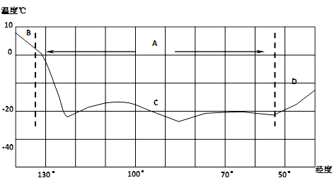 3、综合题 读某月沿55°N纬线的海洋和陆地气温分布示意图,回答下列问题:(12分)